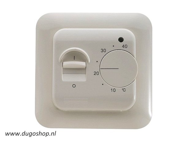 Dieses Einbauthermostat passt in eine handelsübliche Unterputzdose, wie sie beispielsweise für einen Lichtschalter verwendet wird. An einen (1) Einbauthermostat können Sie mehrere Kabel oder Matten für die Elektroheizung bis maximal 3.600 Watt anschließen.